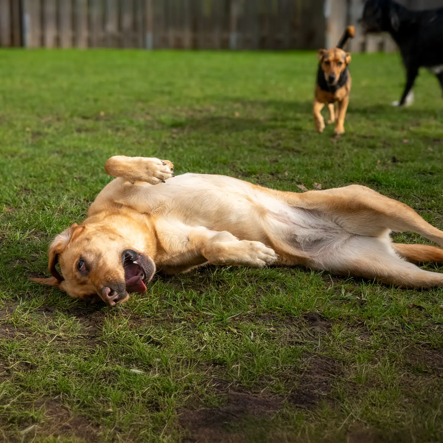 Der regelmäßige Umgang mit Artgenossen ist auch für erwachsene Hunde wichtig, um Sozialverhalten zu festigen, Konflikte adäquat zu lösen und negative Erfahrungen abzubauen. In unseren Spielstunden dürfen die Hunde auf sicher eingezäuntem Gelände unter Aufsicht und Anleitung miteinander Sozialkontakte pflegen. Wir bieten für große und kleine Hunde getrennte Stunden an.